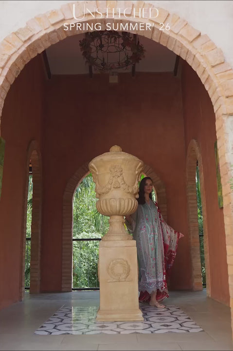 A refined expression of summer calm, imagined in this two tonal premium lawn. The embroidered shirt fabric features a delicate trellis of blooms and fine geometries along the length, with flowering tendrils tracing the sleeves. Finished with a delicate lawn trim for the neckline and embroidered organza borders to edge the hem and cuffs. Balanced by matching solid bottoms, that include embroidered organza borders, the silhouette feels relaxed yet refined. Completed with the vibrant contrasts of a printed pure silk, the look is perfect for sunlit days and gatherings.