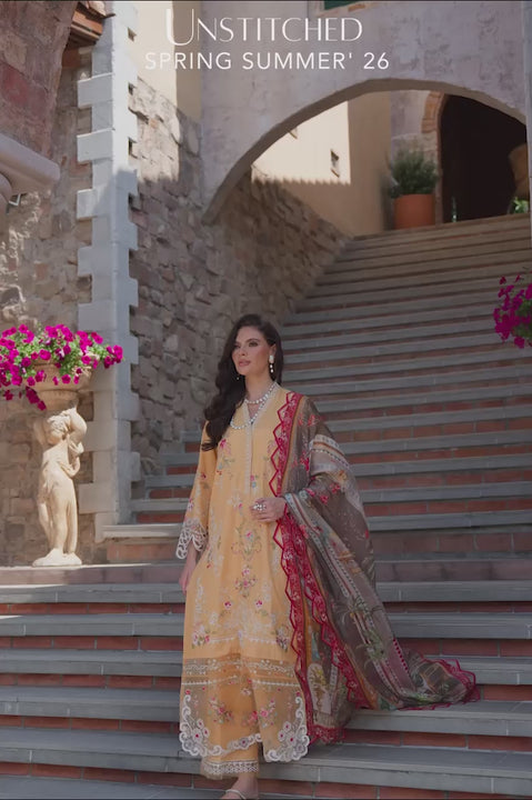 This exquisite ensemble, crafted from our premium lawn, draws inspiration from French floral imagery. Adorned with delicate embroidered organza borders, it is beautifully complemented by a contrasting pure silk printed dupatta and matching lawn pants, creating a look of timeless elegance.