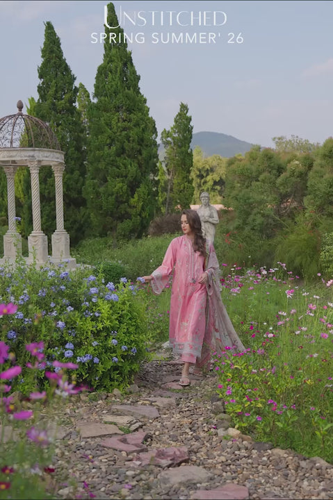 In petal pink, this premium lawn suit feels light and graceful. Embroidered tendrils and blooms drift across the length and sleeves, finished with a delicate trim for the neckline and organza borders for the hem and cuffs. Matching bottoms, that come with an embroidered lawn border and organza motifs, and a printed pure silk dupatta complete this painterly composition.